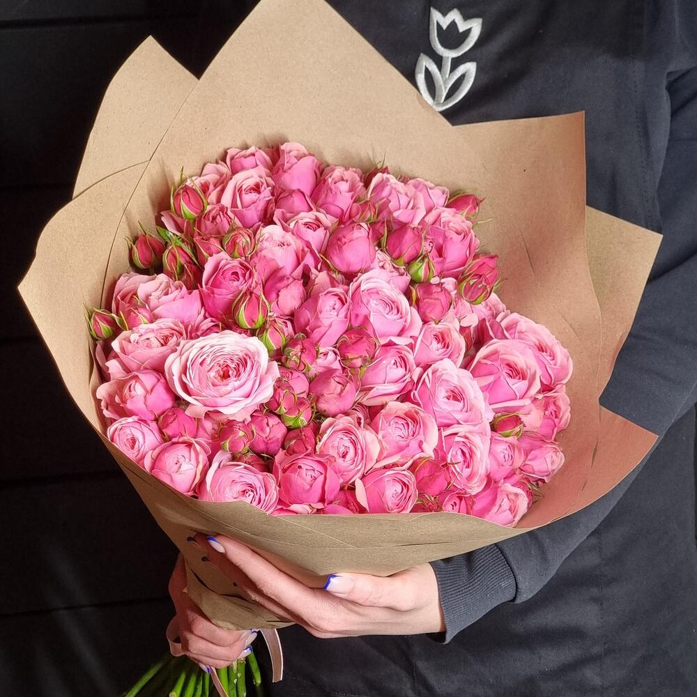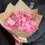 роза силва пинк пионовидная – 15 шт.Крафт упаковка – 1 шт.Лента атласная – 1 шт.