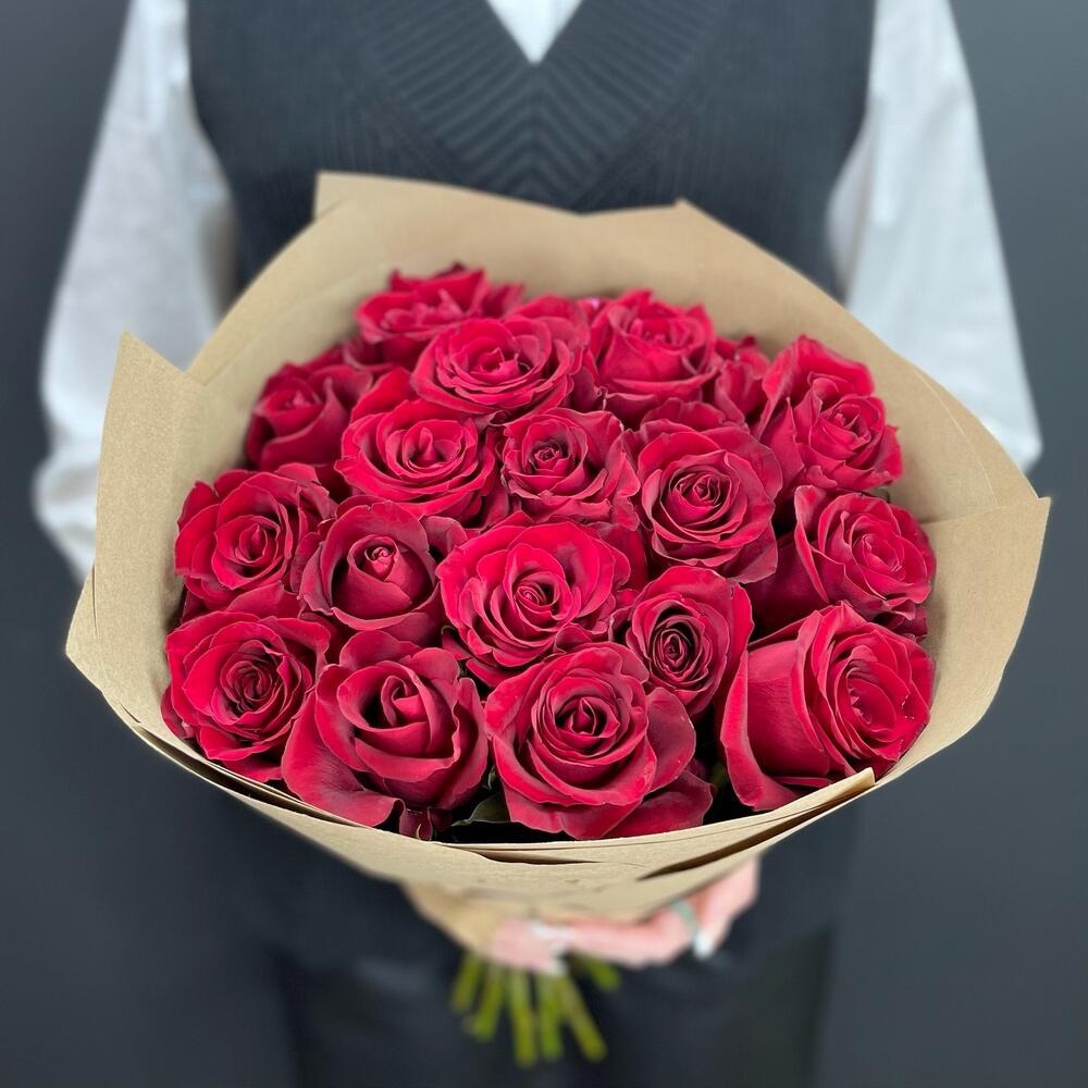 Роза эквадор 55 см – 17 шт.Крафт упаковка – 1 шт.