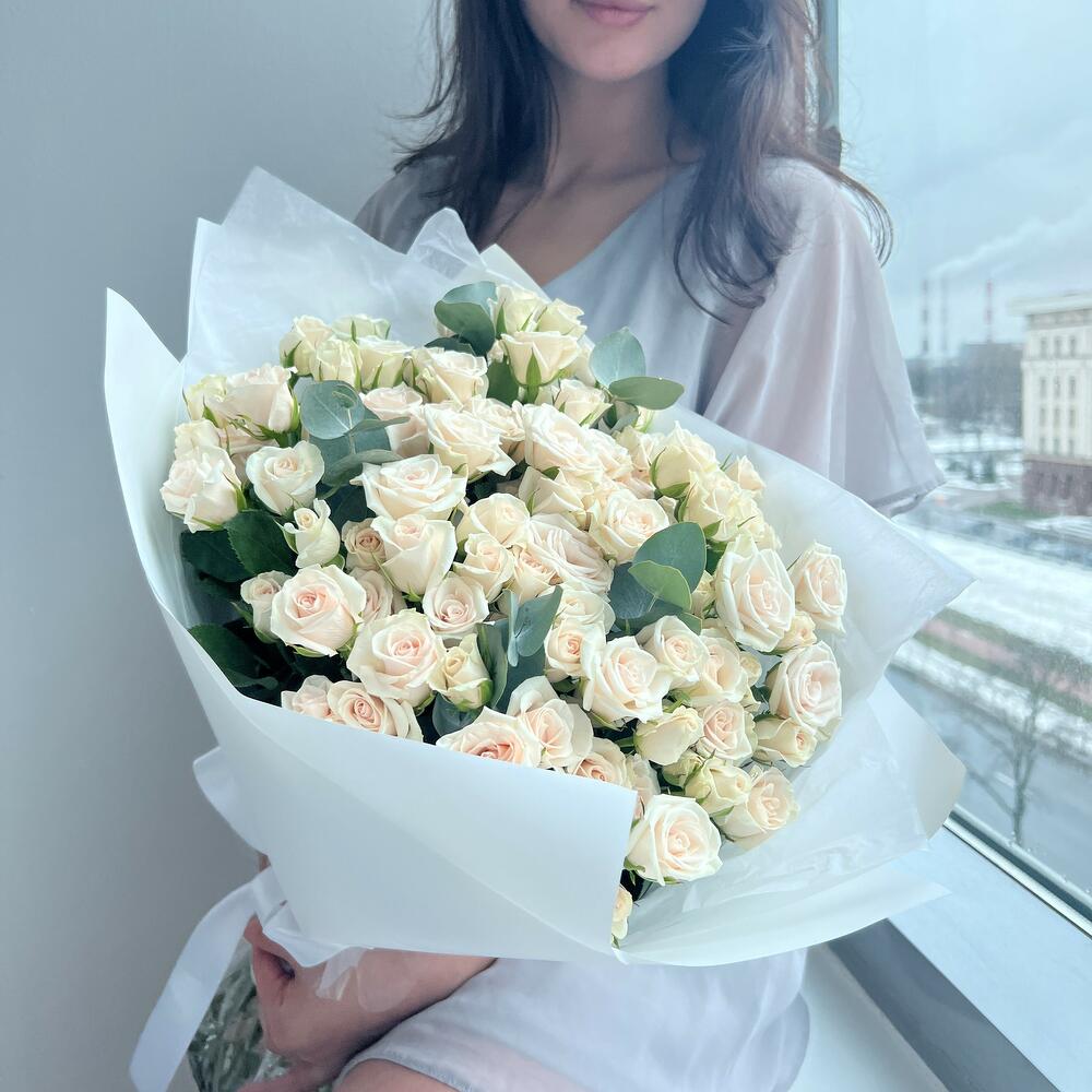 Роза кустовая – 25 шт.Эвкалипт – 4 шт.