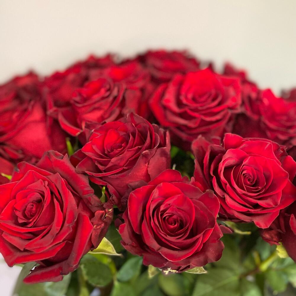 Роскошный букет из 101 красной розы. Букет 158 ALMOND ROSES