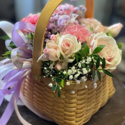 Метки: 501 роза, от 5000 руб, Роза Роза 40 см, Розы в корзине, цветы в корзине