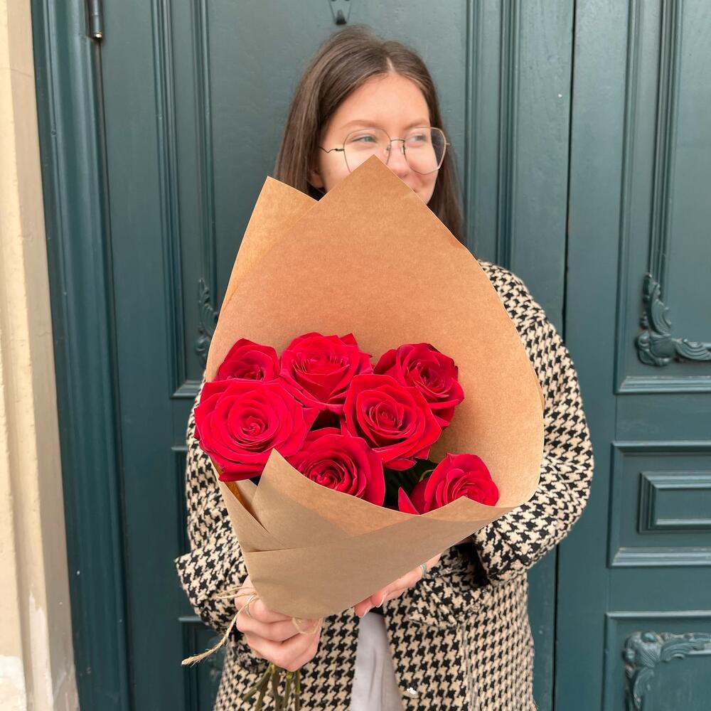 Крафт – 1 шт.Роза красная 50 см – 7 шт.