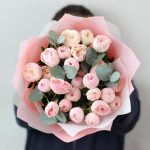 7 кустовых пионовидных роз мэнсфилд парк с эвкалиптом. Букет 22 KimFlo