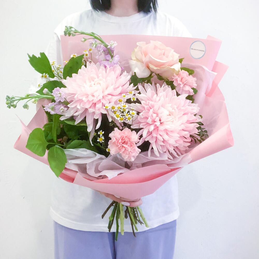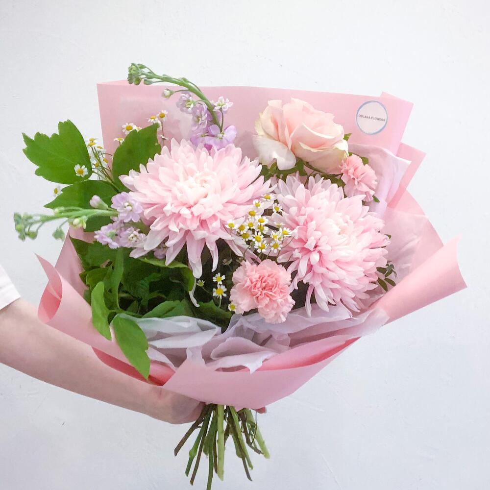 Маттиола – 2 шт.Ромашка – 2 шт.Гвоздика – 2 шт.Тишью – 1 шт.Фисташка – 3 шт.Хризантема Антонов – 2 шт.Роза французская – 1 шт.Аквапак – 1 шт.Корейская пленка – 3 шт.Инструкция по уходу – 1 шт.транспортировочная упаковка – 1 шт.
