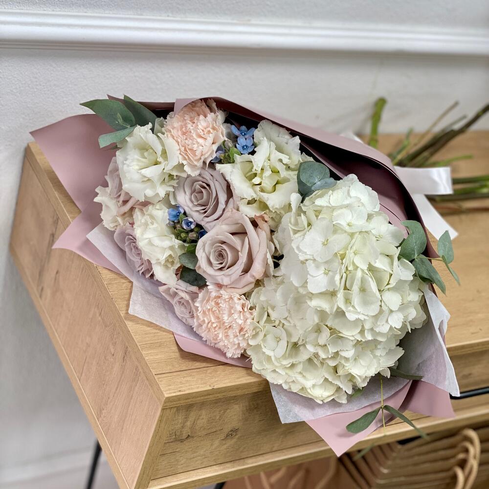 Авторский букет с ароматными розами и гортензией «Тайное влечение»