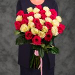 Букет 35 белых и розовых роз.