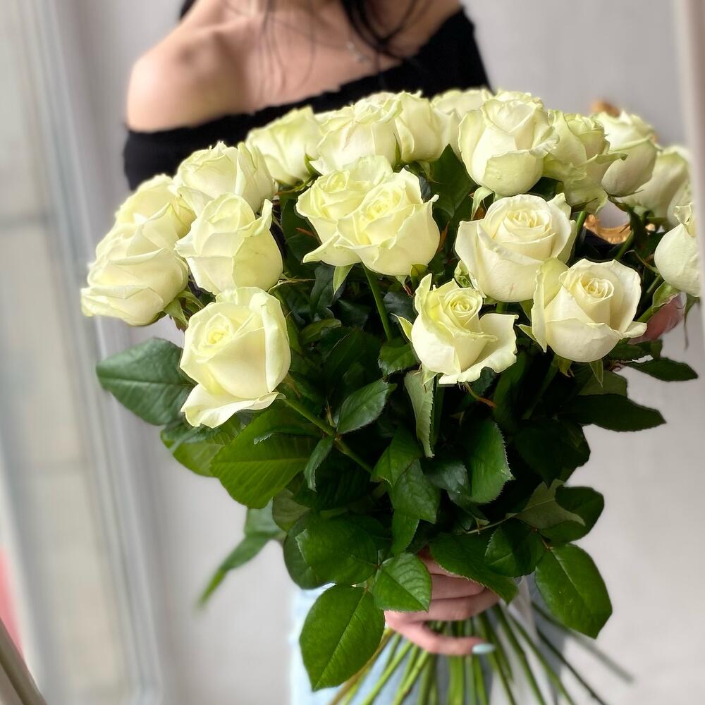 Букет белых роз 25 штук 60 см