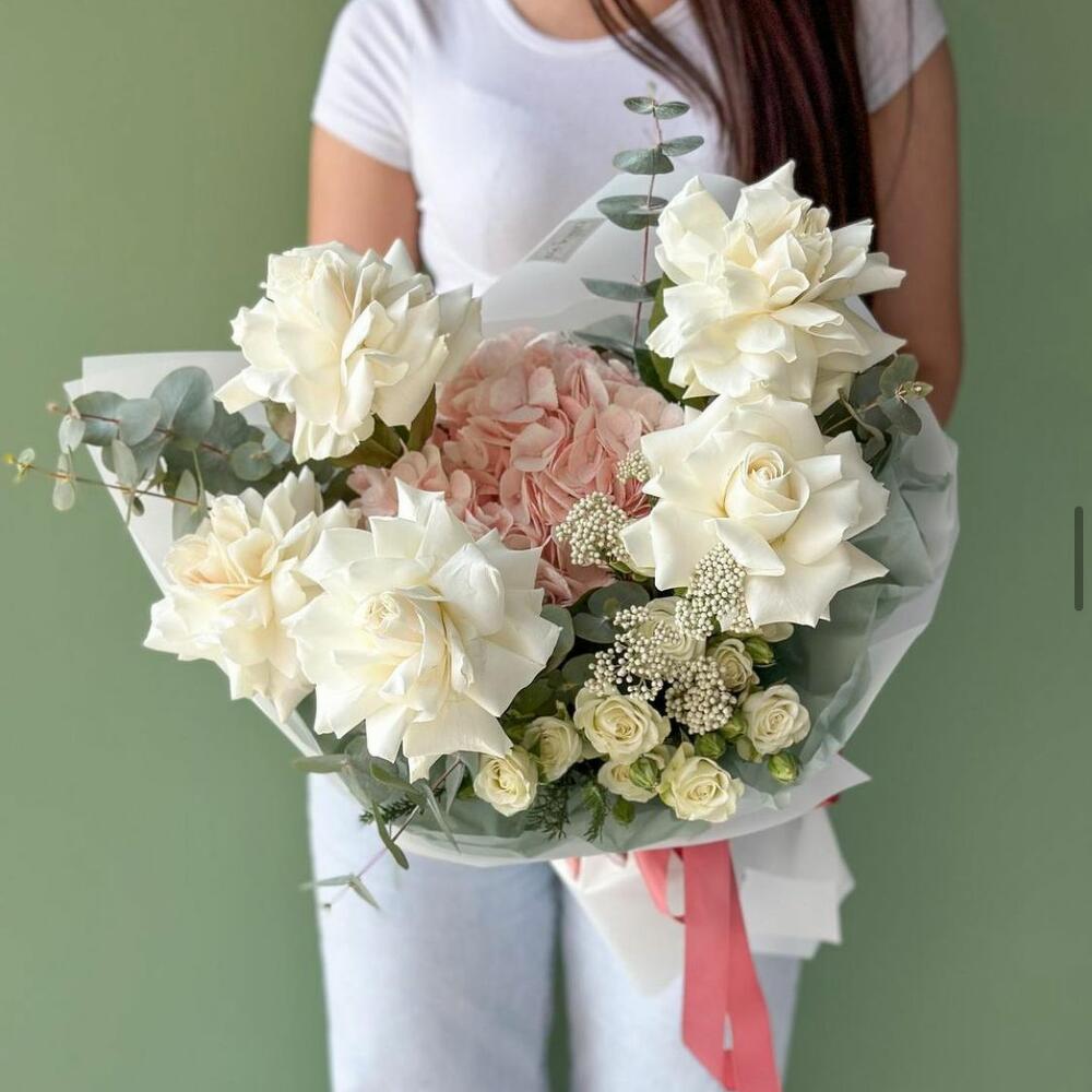 “Эвкалиптическая роскошь” гортензия и пионовидная кустовая роза