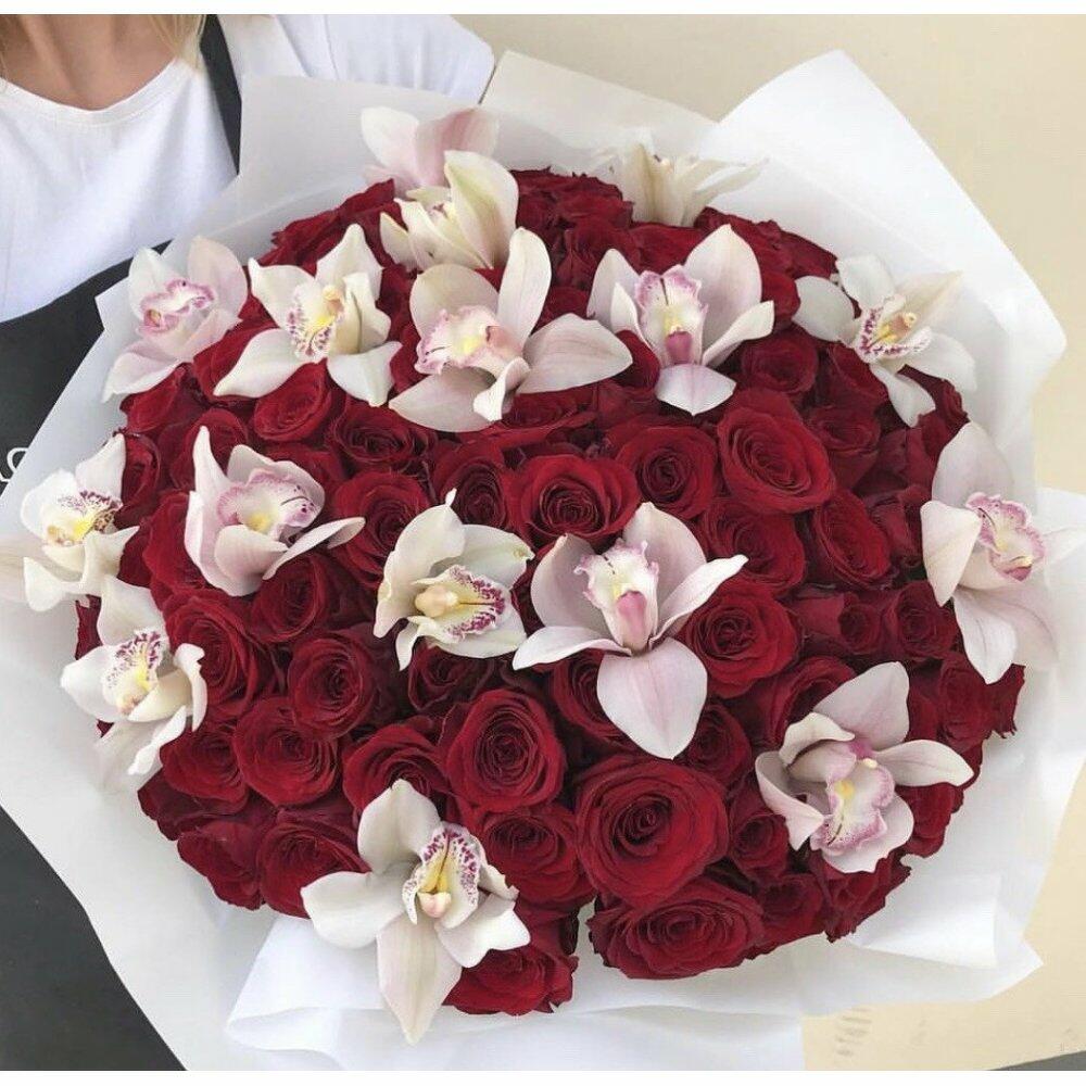 Роза красная Эквадор – 51 шт.орхидея соцветия – 13 шт.