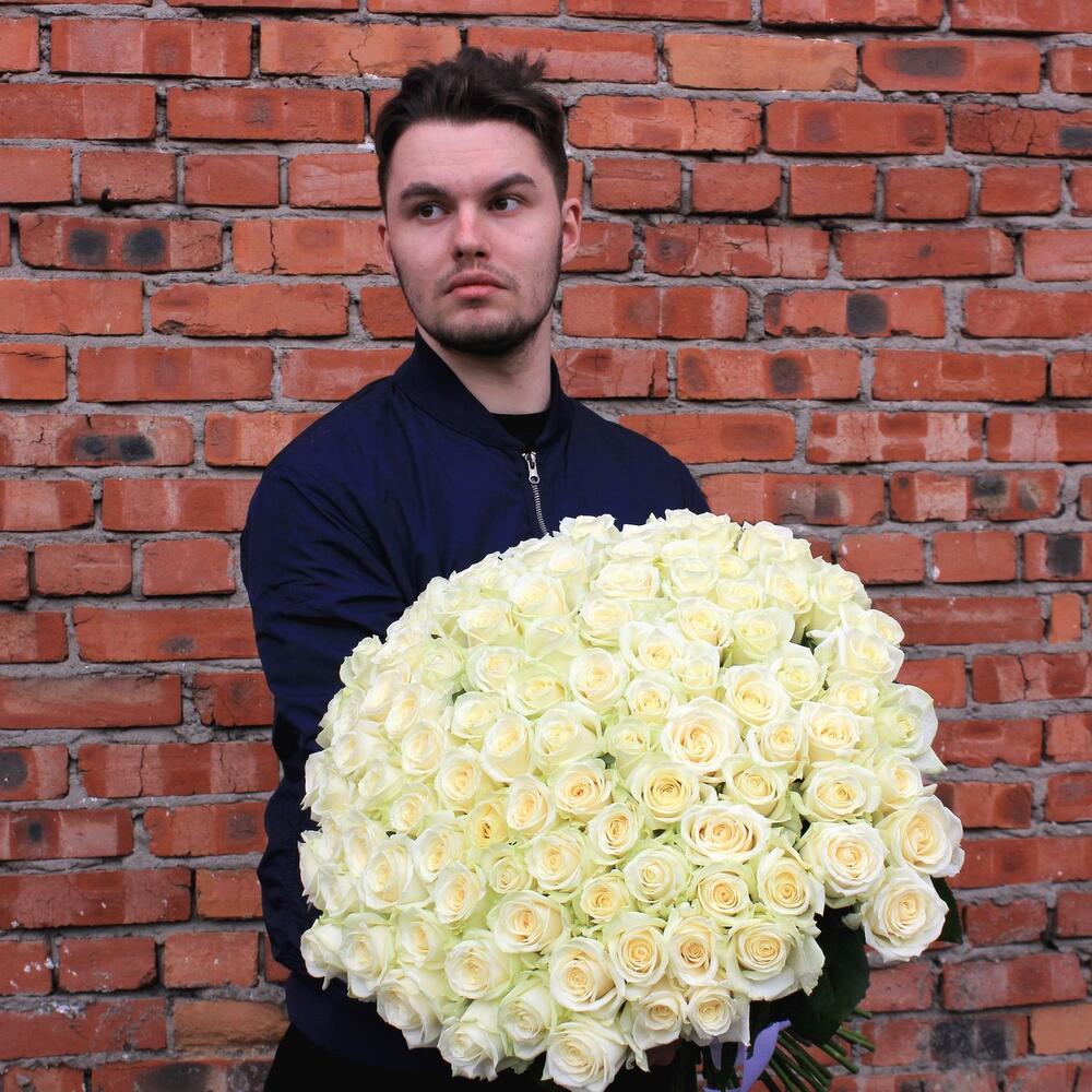Букет из 101 белой Розы 60 см