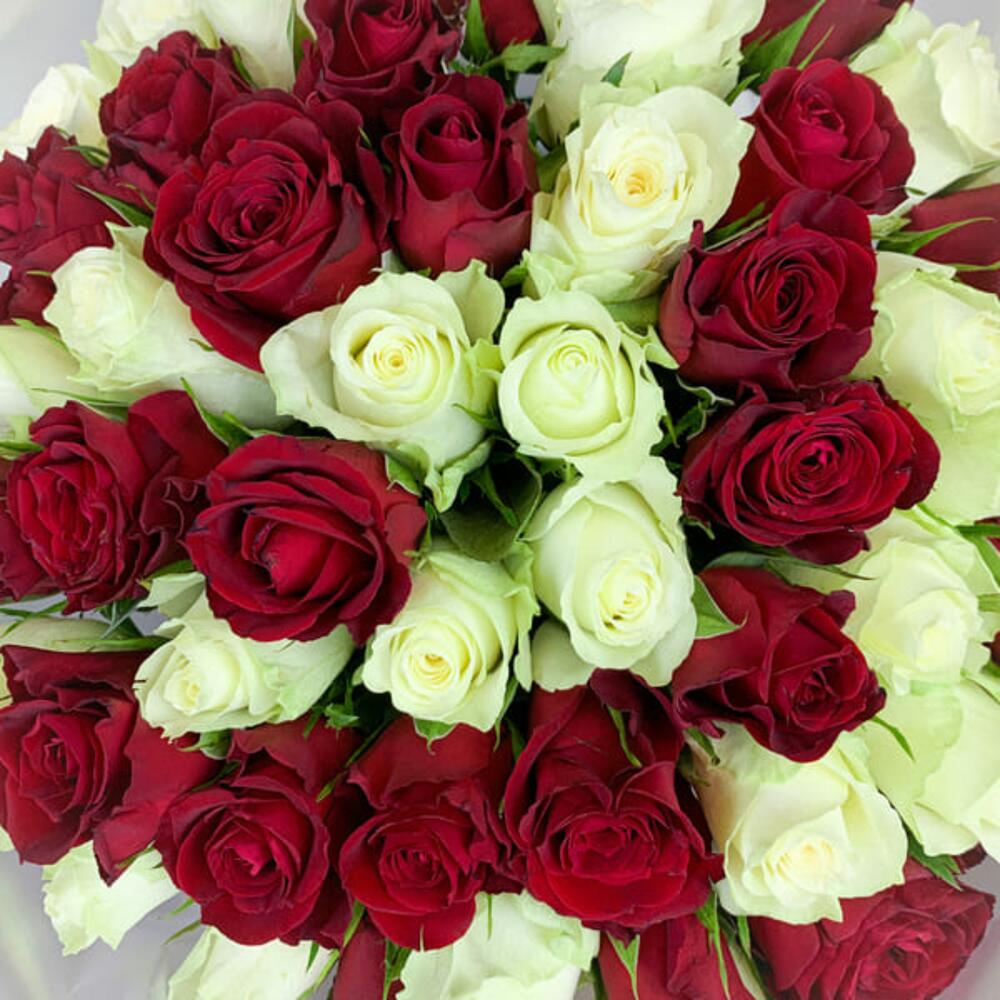 роза красная и белая кения 35-40 см – 51 шт.