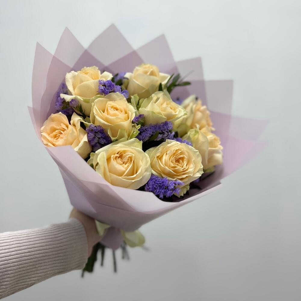 Букет из Чайных Роз и Статицы