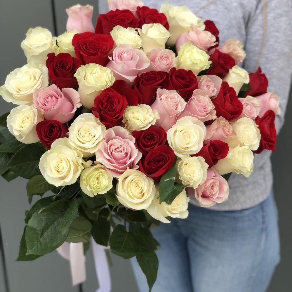 Букет из красных, белых и розовых роз Бабочки внутри меня из 51 розы