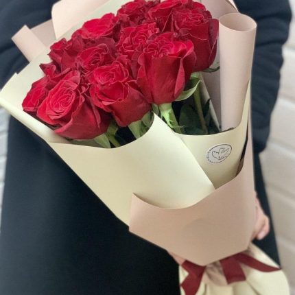 роза красная фридом – 15 шт. Оформление – 1 шт.