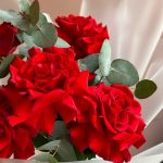 Букет из красных роз«Алый закат» (розы красные французские, эвкалипт)