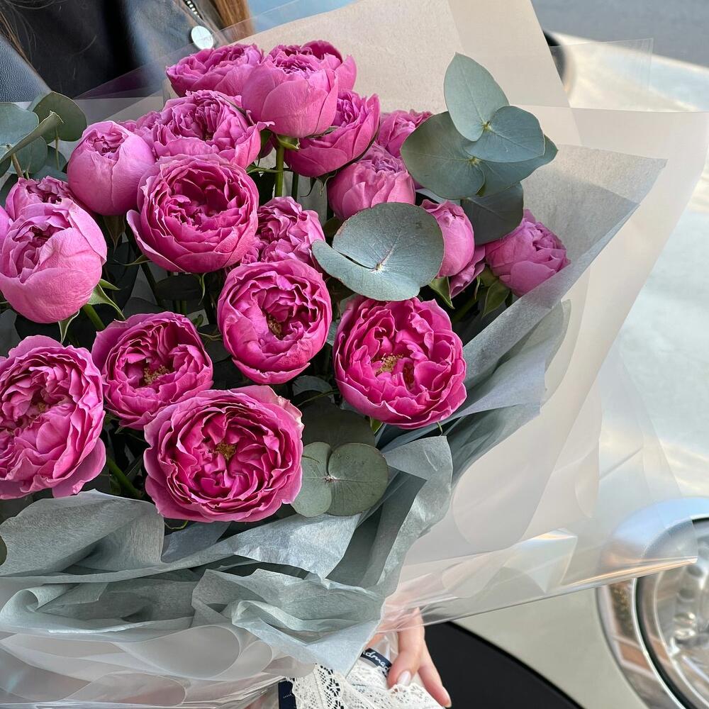 Букет из кустовой пион розы с эвкалиптом (СБ 001)
