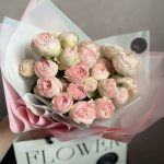 Букет из кустовой пионовидной розы «Грин пинк»