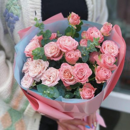 Пионовидная роза – 5 шт. Кустовая роза – 6 шт.