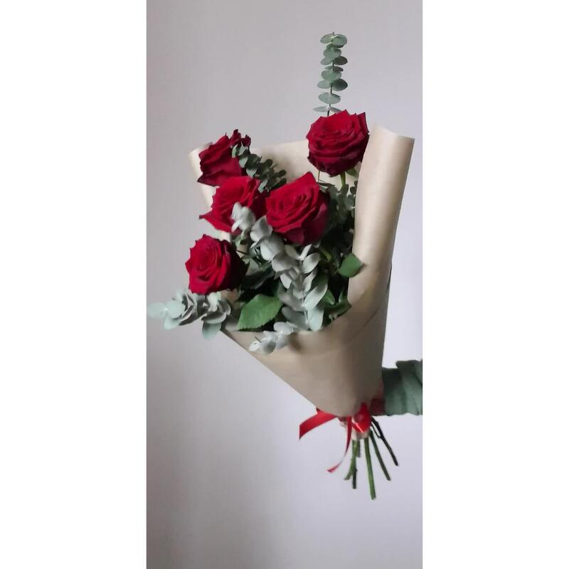 Букет из роз и эвкалипта
