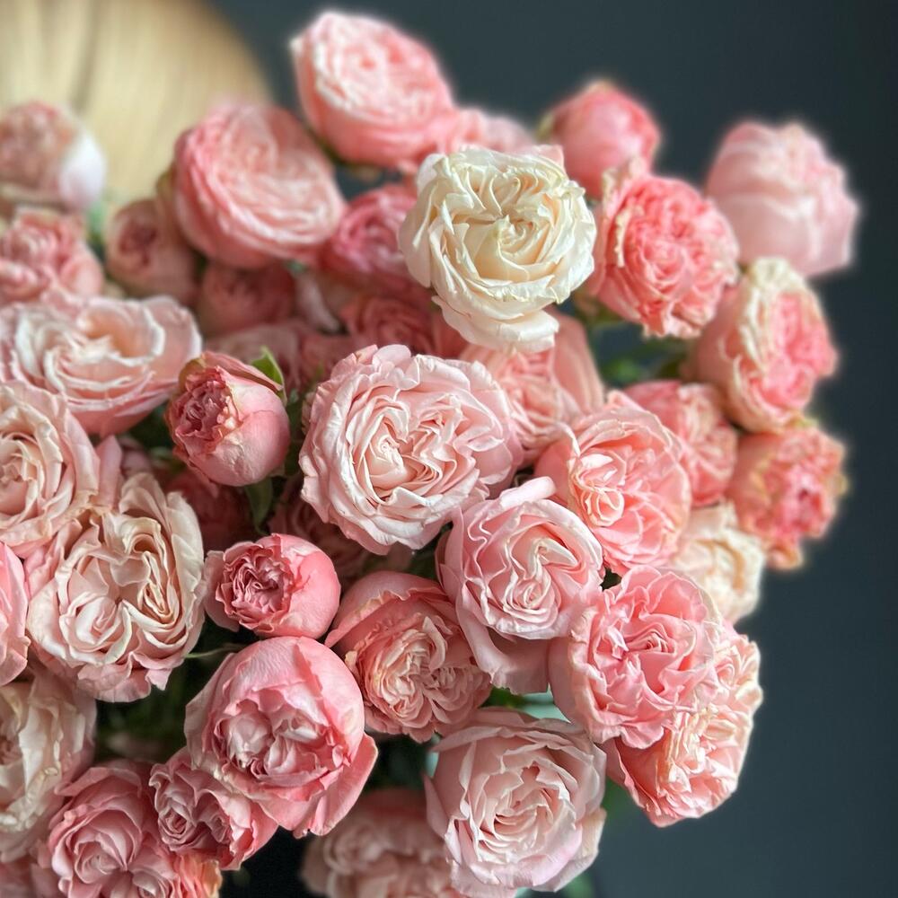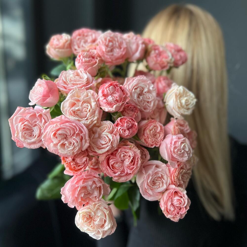 роз кустовая пионовидная – 13 шт.Лента атласная – 1 шт.