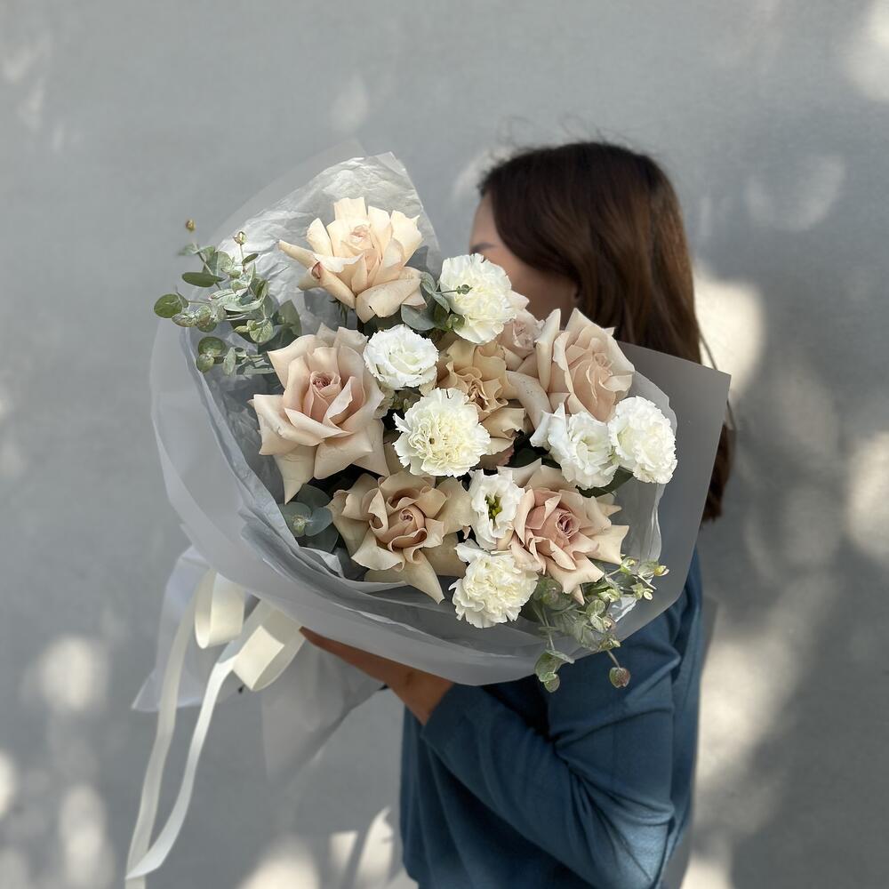 Изысканный букет в кофейно-кремовых оттенках.
