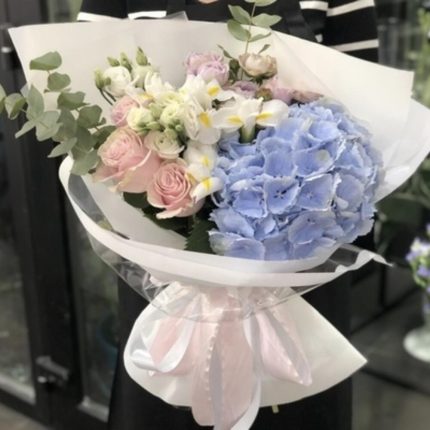 Букет из гортензий, пионов и пионовидных роз «Струны души»