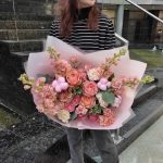 Букет с пионовидной розой, матиолой и гвоздикой