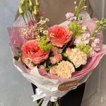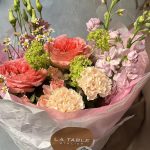 Букет с пионовидной розой, матиолой и гвоздикой