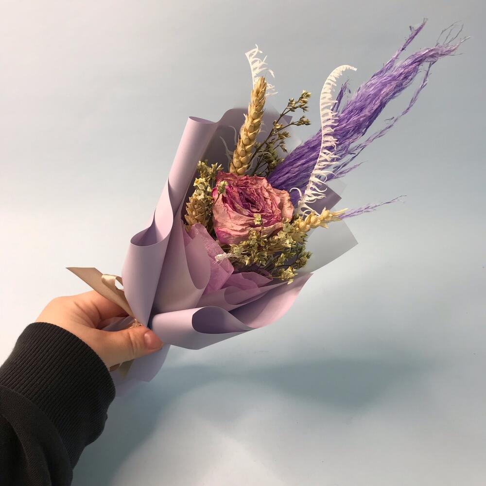 колосья сухоцветы – 3 шт.Ковыль – 1 шт.аспарагус стабилизированный – 1 шт.роза засушенная – 1 шт.лимониум засушенный – 1 шт.Оформление – 1 шт.