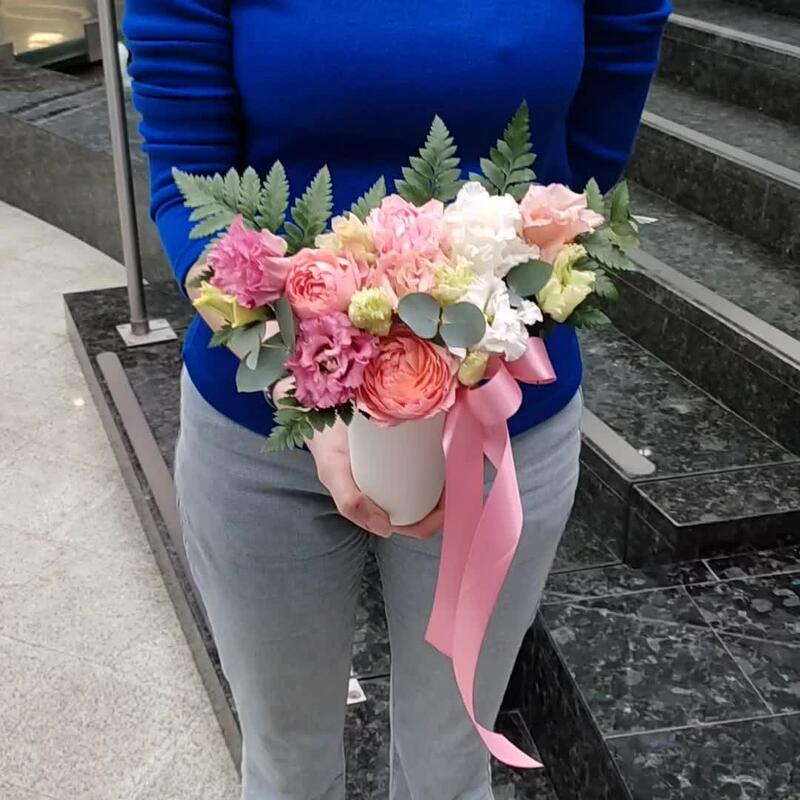 Цветочная композиция в шляпной коробке