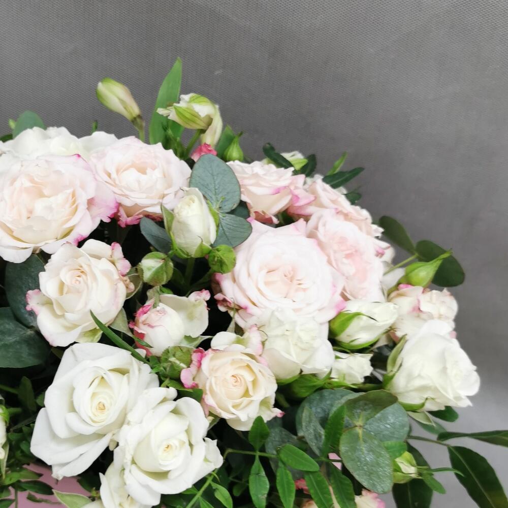 Гвоздики, Кустовые розы, Лизиантусы, Пионовидные розы, Розы
