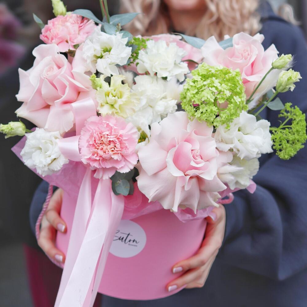 "В твоих глазах": нежная шляпная коробка с французскими розами