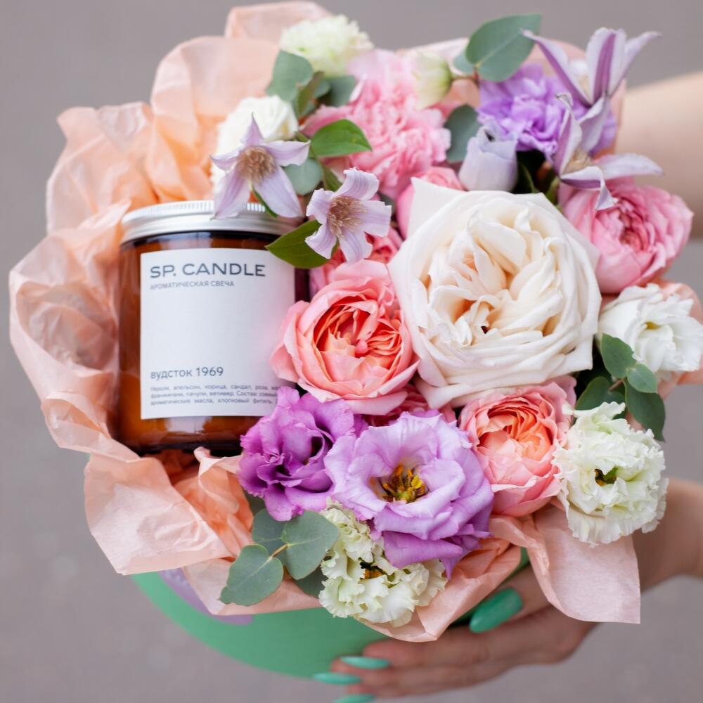 аромасвеча sp candles 220г – 1 шт.Роза – 3 шт.Гвоздика – 3 шт.Клематис – 2 шт.Лизиантус – 3 шт.