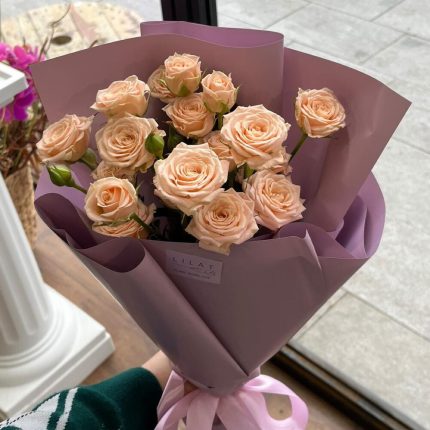 кустовые пионовидные розы ж – 13 шт. Упаковка дизайнерская – 1 шт. Открыточка с вашими пожеланиями – 1 шт. инструкция по уходу за цветами – 1 шт.