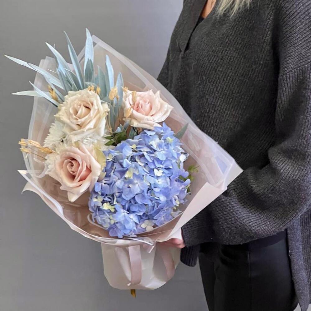 “Эвкалиптическая роскошь” гортензия и пионовидная кустовая роза