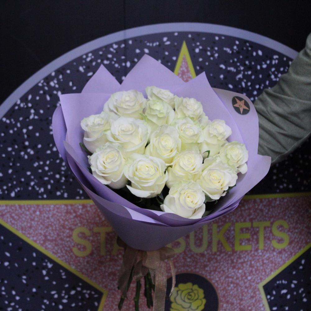 Роза Мондиаль – 15 шт.Пленка дизайнерская – 3 шт.Лента атласная – 1 шт.