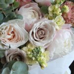 Роза пионовидная – 7 шт.Роза сортовая – 7 шт.Маттиола – 7 шт.Пион – 5 шт.Эвкалипт – 9 шт.Упаковка – 1 шт.