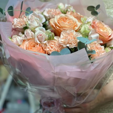 По ситуации , сорта цветов могут быть иными, чем на фото, но стилистика букета будет сохранена.