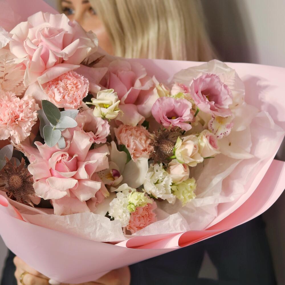 Категорий: Гвоздики, Кустовые розы, Лизиантусы, Пионовидные розы, Розы