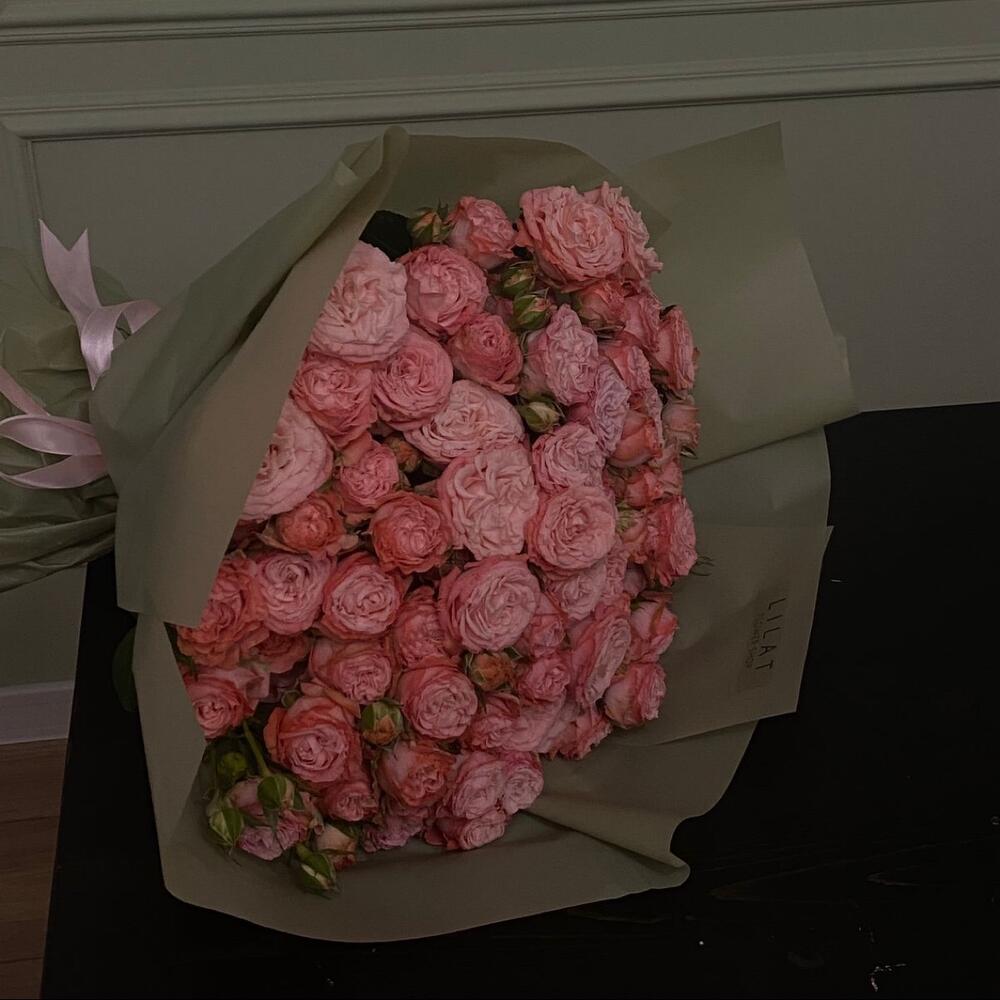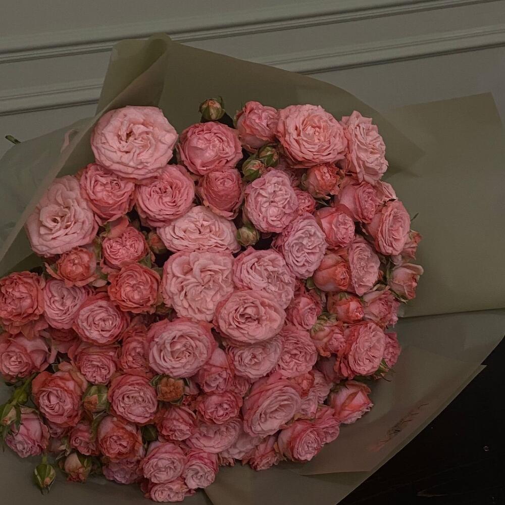 Большой букет из кустовых пионовидных роз Мадам Бомбастик