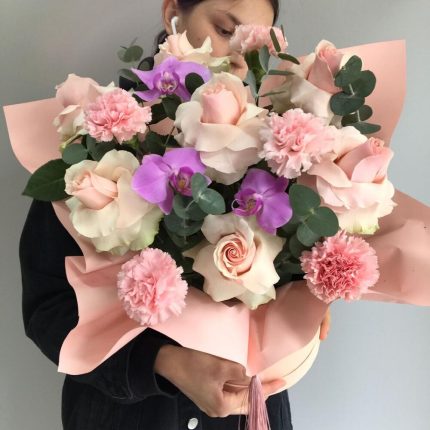 Цветы в коробке сборный букет