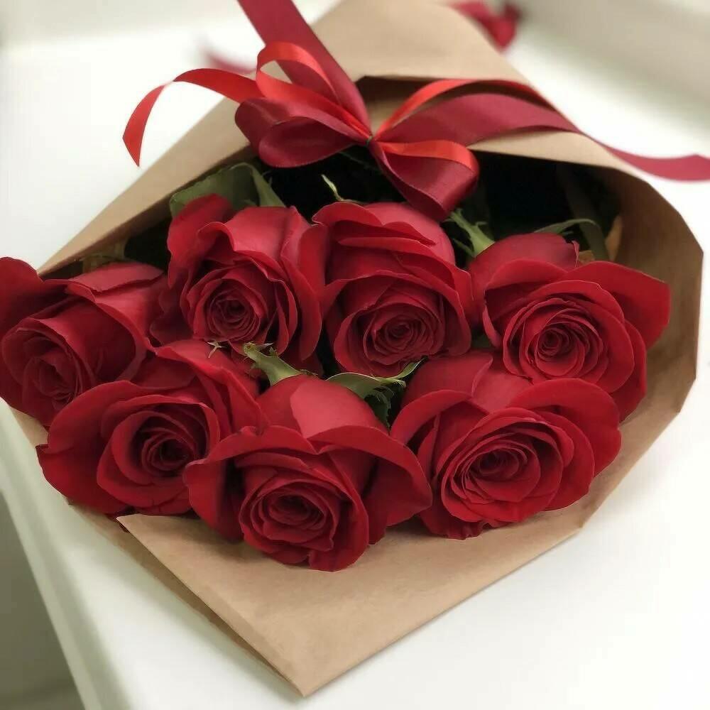 7 пионовидных роз в крафт упаковке