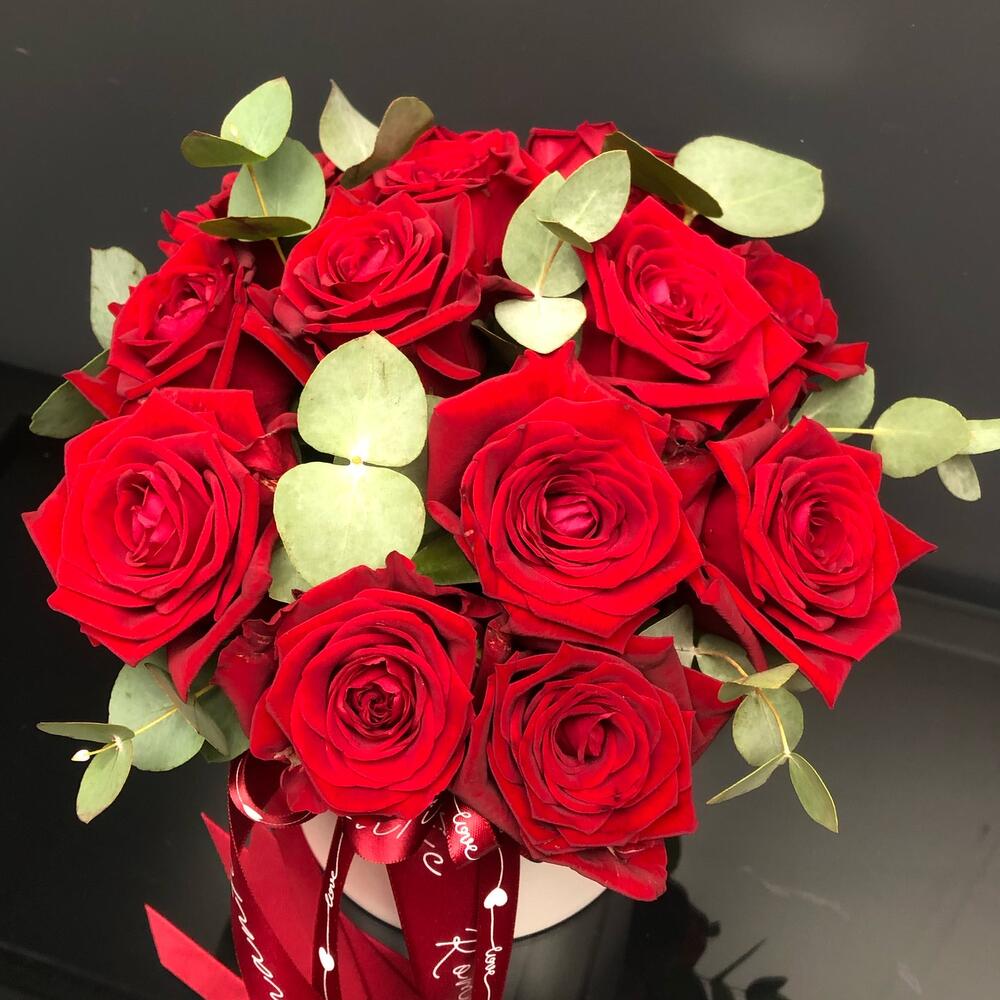 Стильная коробочка роз с эвкалиптом станет приятным подарком на любой повод!