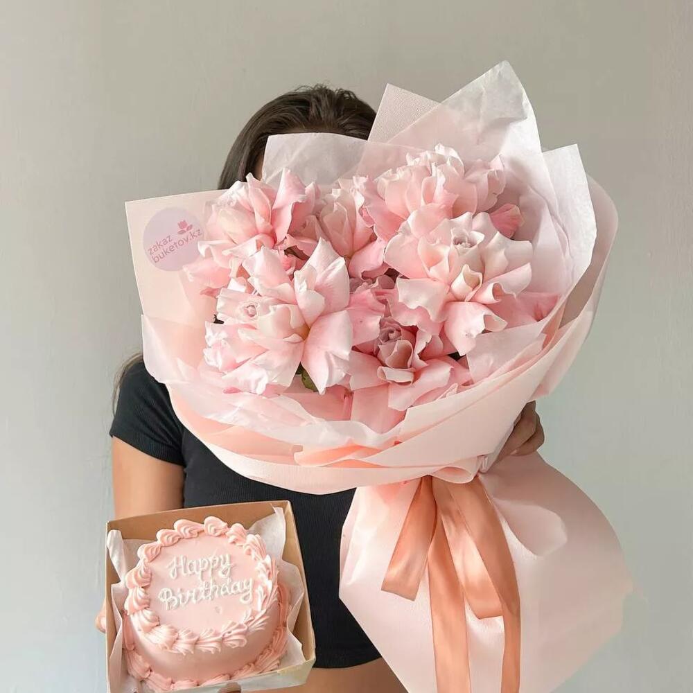Букет кустовых пионовидных розовых роз «Очаровательной Леди»