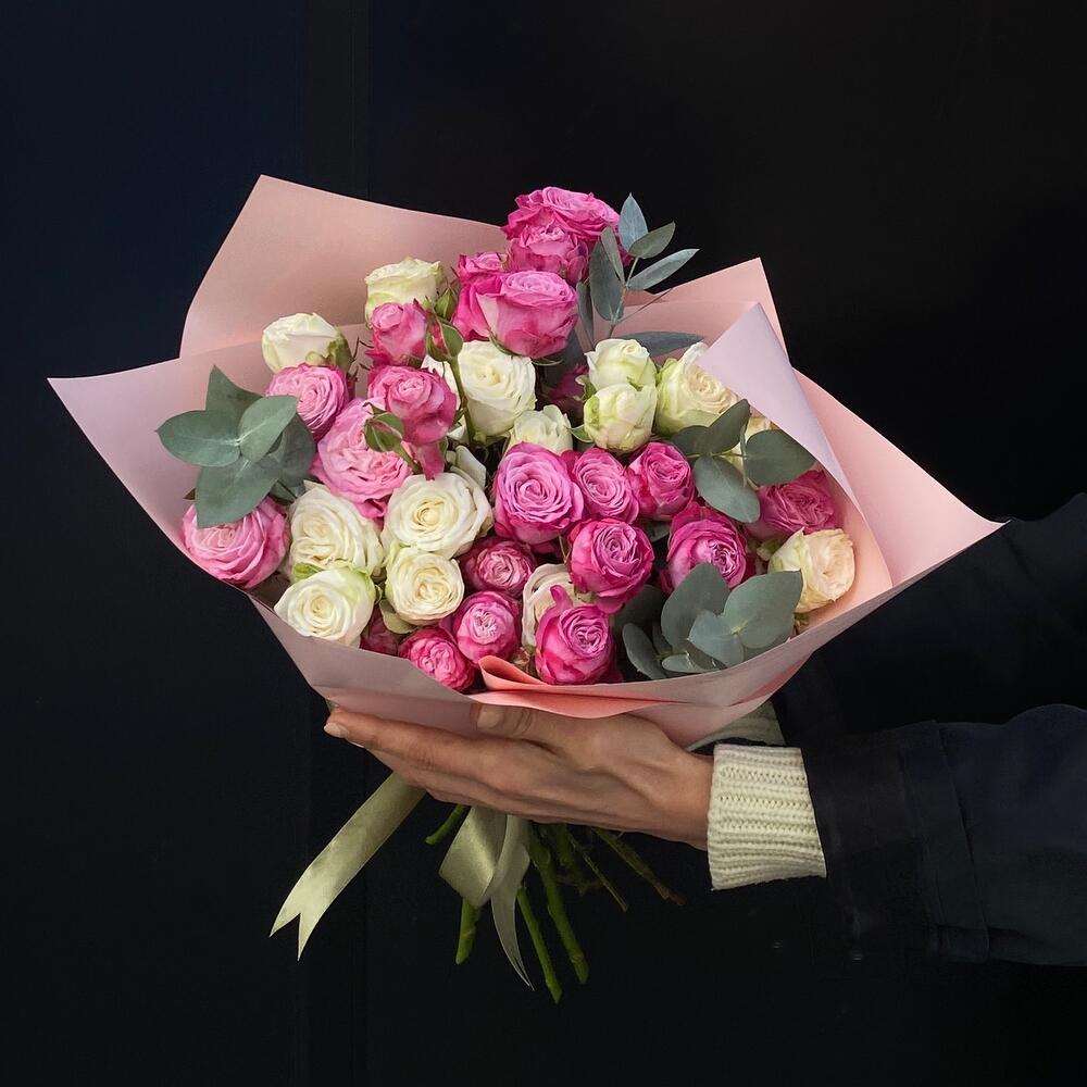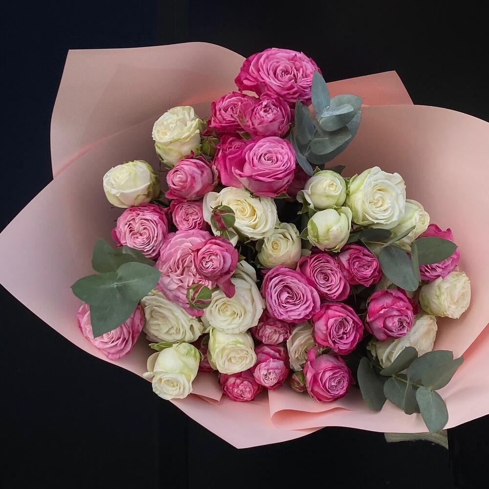 Альстромерии, Кустовые розы, Лизиантусы, Пионовидные розы, Розы, Ромашки