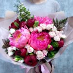 Вишня со сливками букет с пионами