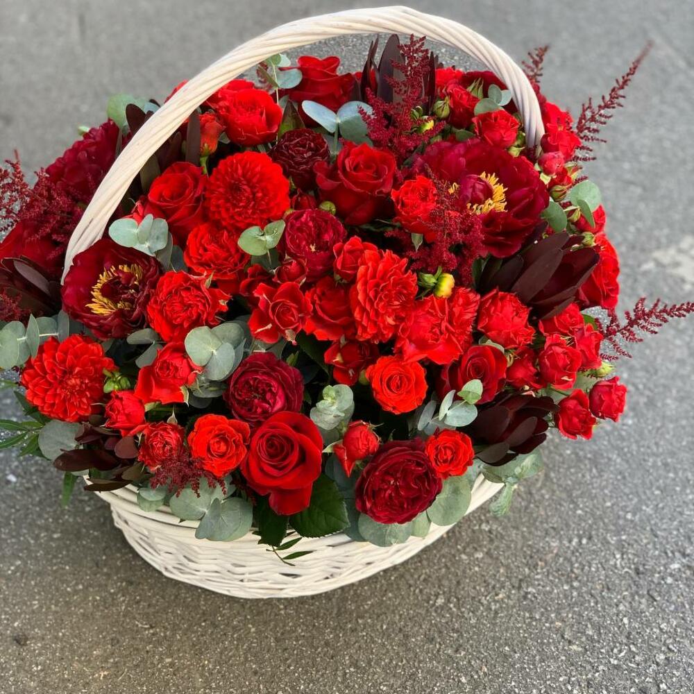 Яркая корзина с красными розами