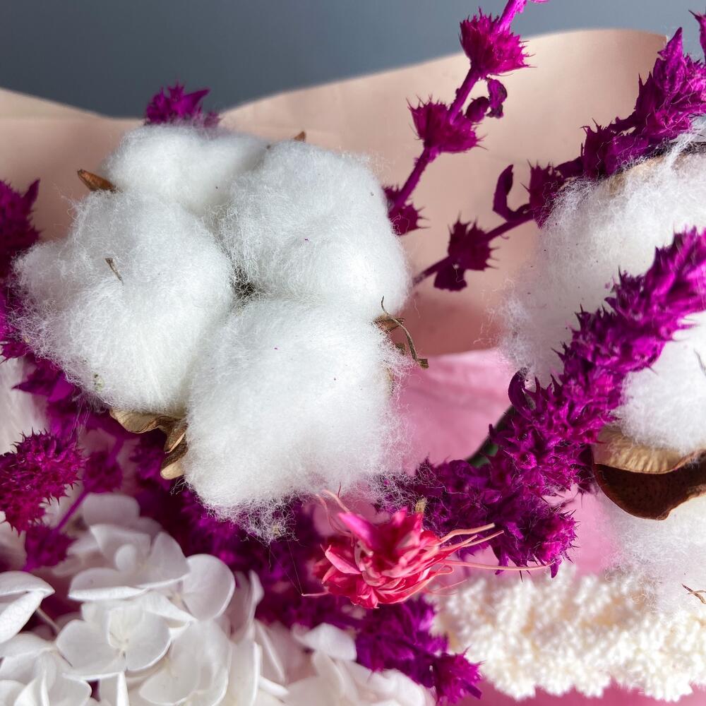 Букет из сухоцветов в розовых тонах с хлопком
