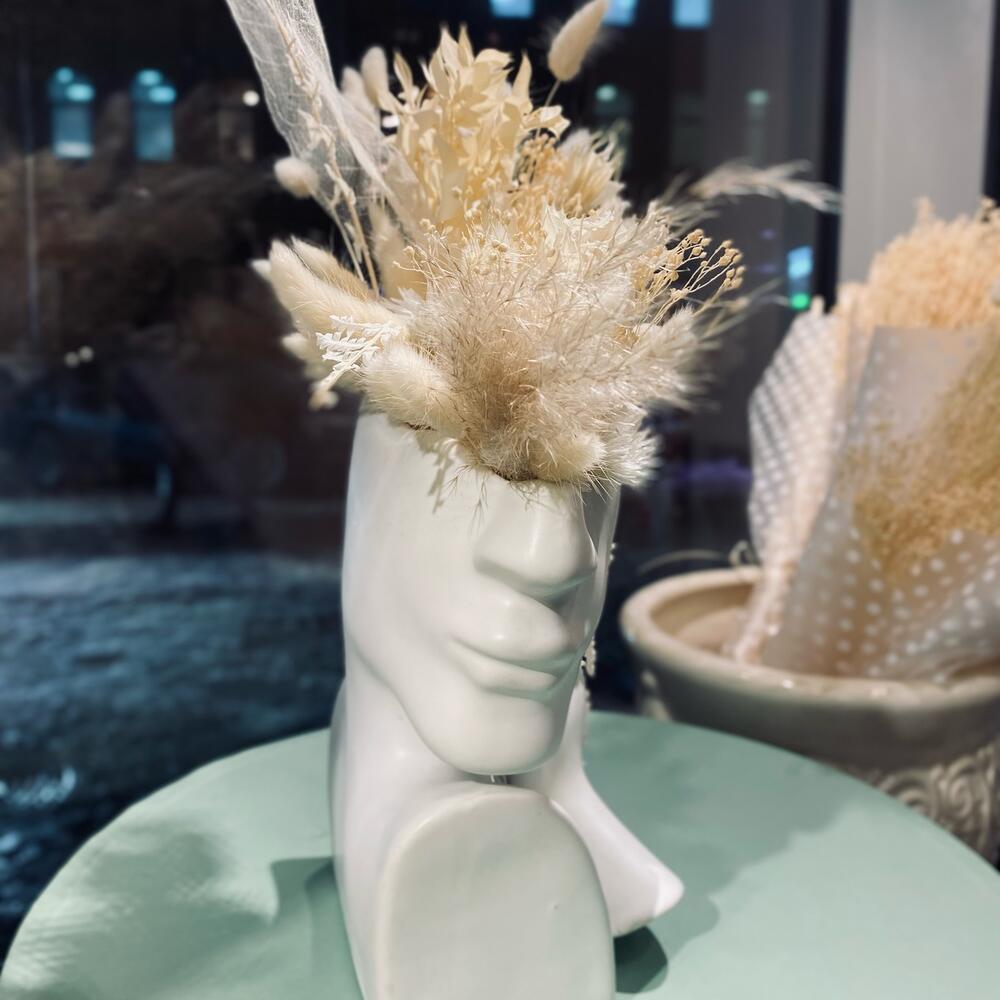 Композиция из сухоцветов в керамической голове
