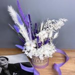 “Сиреневый туман” – композиция из гипсофилы в шляпной коробке